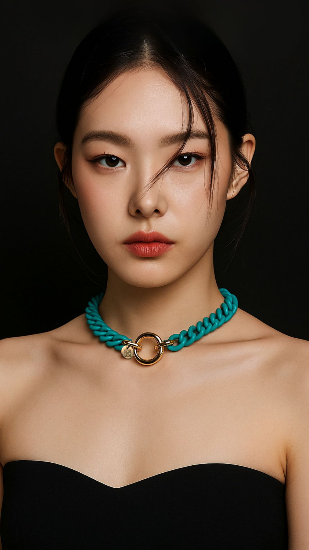 Collana lussuosa ed elegante dalla verniciatura color verde acqua della catena che crea un elegante contrasto con la chiusura sicura a moschettone galvanizzata oro 24 carati. Il regalo ideale per chi apprezza l'eleganza sofisticata. Un pezzo unico che simboleggia moda e classe.