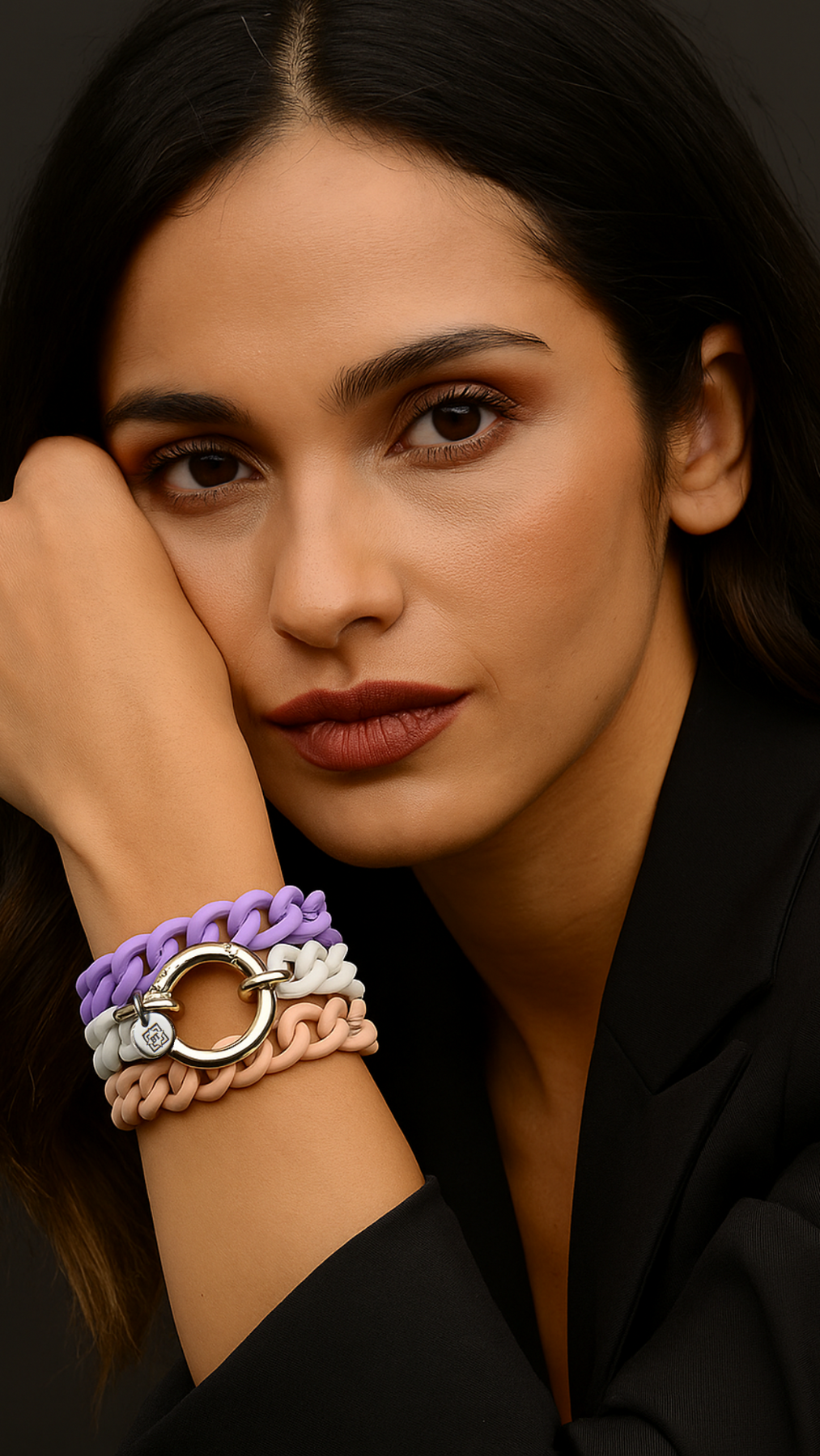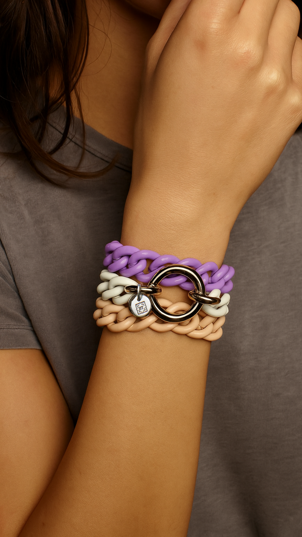 Composition: Burano Bracelet White, Light Pink, Purple in the silver color variant